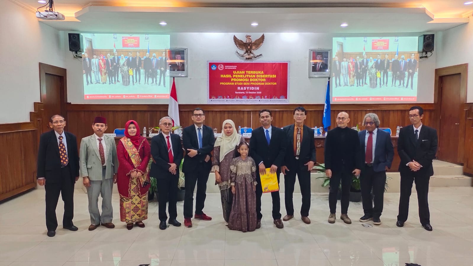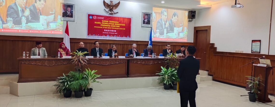 PPSISISKA – Surakarta, 13 Oktober 2025 – Program Doktor Pascasarjana Doktoral Institut Seni Indonesia (ISI) Surakarta menyelenggarakan Sidang Terbuka Disertasi untuk program promosi doktoral berjudul Adaptasi Dan Negosiasi Kolektif Pertunjukan Mop-Mop Berbasis Komunitas Di Aceh, judul ini merupakan pendalaman dari judul awal pada sidang tertutup yaitu Revitalisasi Mop-Mop: Studi Interdisipliner Komunitas Seni Di Aceh. Judul ini hasil dari perbaikan dari sidang kelayakan pada tanggal 16 Juli 2025 dengan judul Revitalisasi dan Restorasi Kolektif Pertunjukan Mop-Mop Berbasis Komunitas Di Aceh oleh Rasyidin sebagai mahasiswa teruji. Karya pengkajian disertasi Minat pengkajian Teater ini diselesaikan di bawah bimbingan Dr. Aris Setiawan, S.Sn., M.Sn. sebagai promotor dan Prof. Dr. Sarwanto, S.Kar., M.Hum sebagai Ko-Promotor. Ujian sidang terbuka dilaksanakan pada hari Senin tanggal 13 Oktober 2025 di laksanakan di Ruang Seminar Lt 1 Pascasarjana ISI Surakarta pada pukul 10.00 – 13.00 WIB, dengan susunan dewan penguji yang terdiri dari Prof. Dr. Bambang Sunarto, S.Sen., M.Sn. sebagai Ketua Penguji, Dr. Drs. Budi Setiyono, M.Si.. selaku Seketaris Penguji, serta Prof. Dr. Soetarno, DEA., Dr. Sunardi, M.Sn., Dr. Koes Yuliadi, M.Hum, Dr. Ratri Candrasari, M.Pd, Dr. Eko Wahyu Prihantoro, S.Sn., M.Sn., selaku anggota tim penguji.