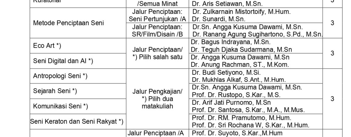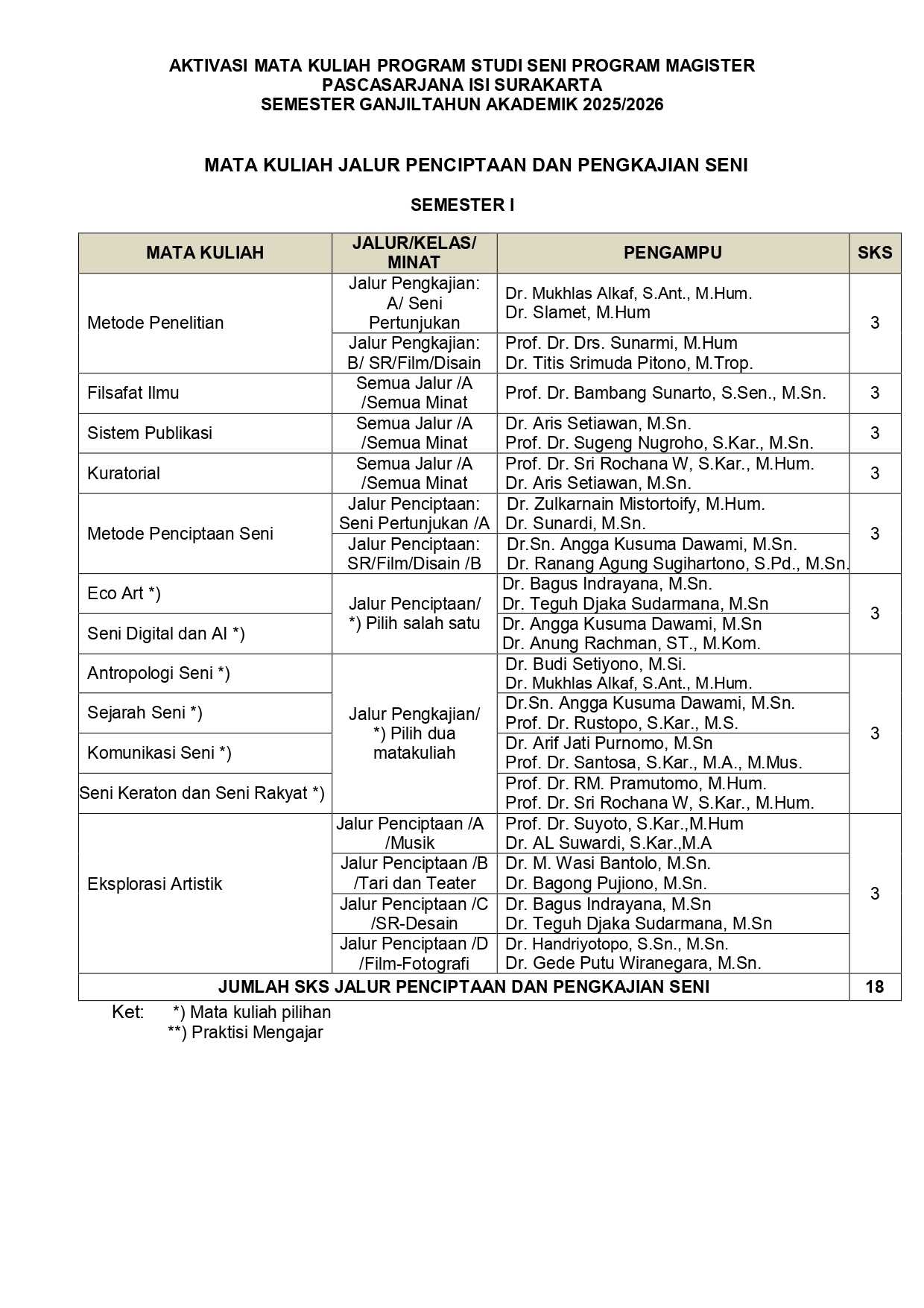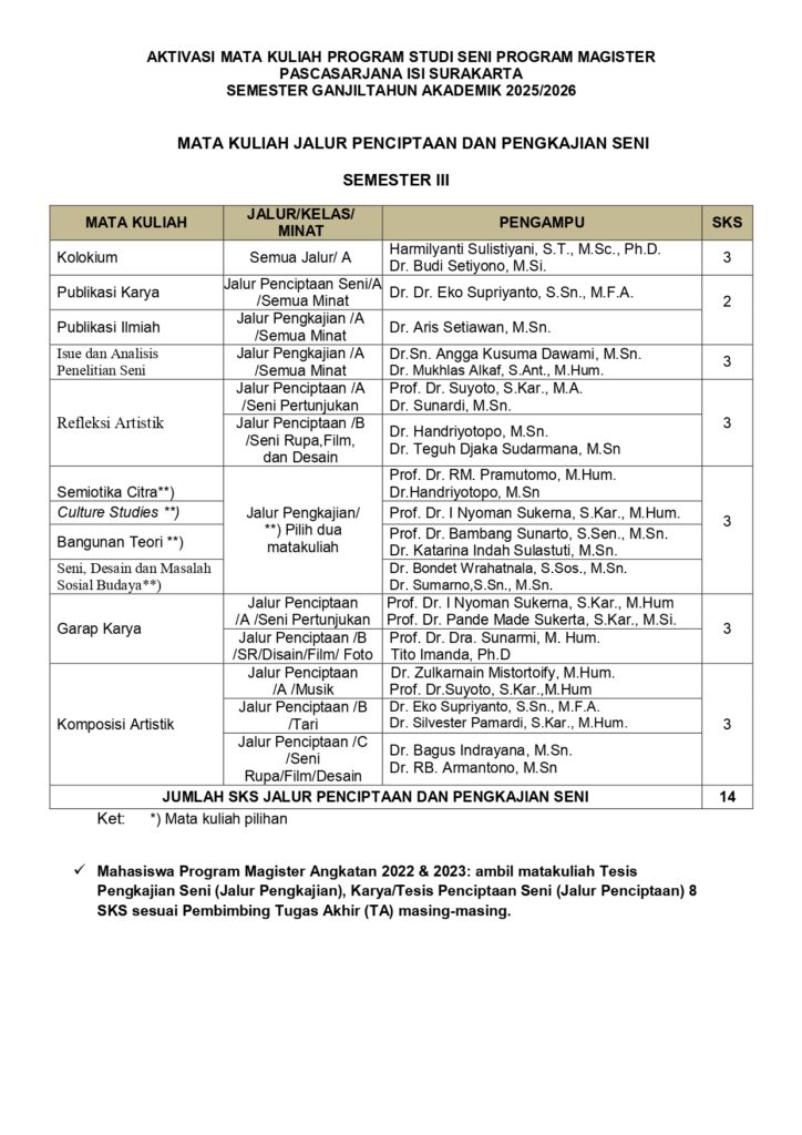 Aktivasi Mata Kuliah Program Studi Seni Program Magister Pascasarjana ISI Surakarta Semester Genap Tahun Akademik 2024/2025