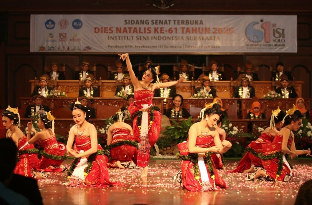 PPSISISKA – Institut Seni Indonesia (ISI) Surakarta menggelar sidang senat terbuka dalam rangka Dies Natalis ke-61 pada Selasa (05/07/2025) pukul 09.00 WIB, bertempat di Pendopo GPH Joyokusumo ISI Surakarta. Acara ini bertema The Harmony of Tradition and Innovation, Building Independence Towards the Future, mengandung harapan ISI Surakarta menjadi penanda arah dan semangat transformasi Surakarta ke depan di tengah arus globalisasi dan disrupsi digital.