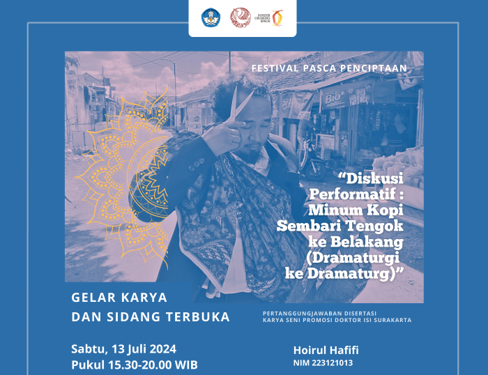 “DISKUSI PERFORMATIF: MINUM KOPI SEMBARI TENGOK KE BELAKANG (DRAMATURGI KE DRAMATURG)” – Ujian Terbuka Progam Doktor Hoirul Hafifi
