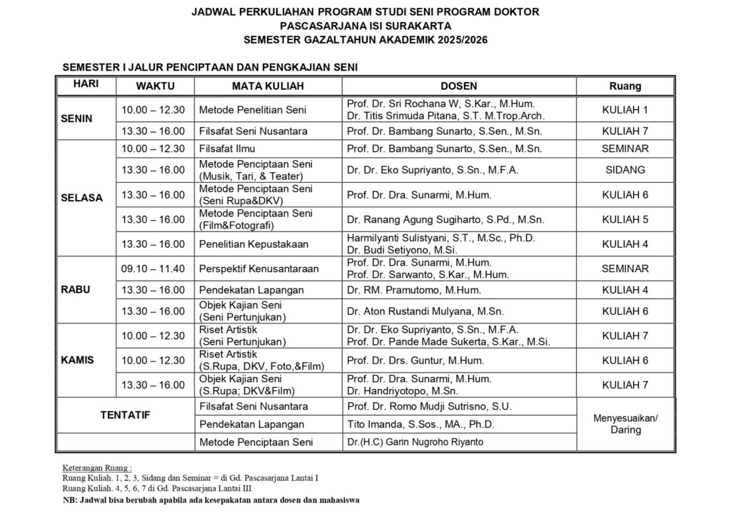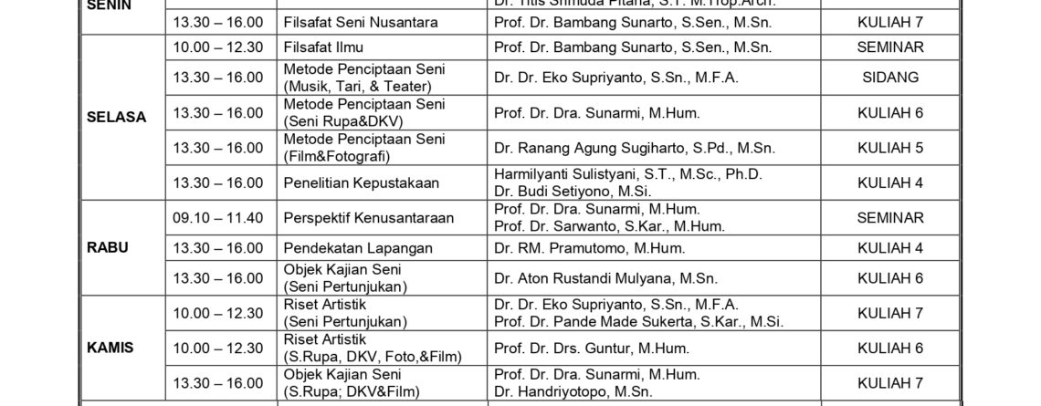 AKTIVASI MATA KULIAH ONLINE (KRS) PRODI SENI MAGISTER DAN DOKTOR PASCASARJANA ISI SURAKARTA SEMESTER GENAP TAHUN AKADEMIK 2023/2024