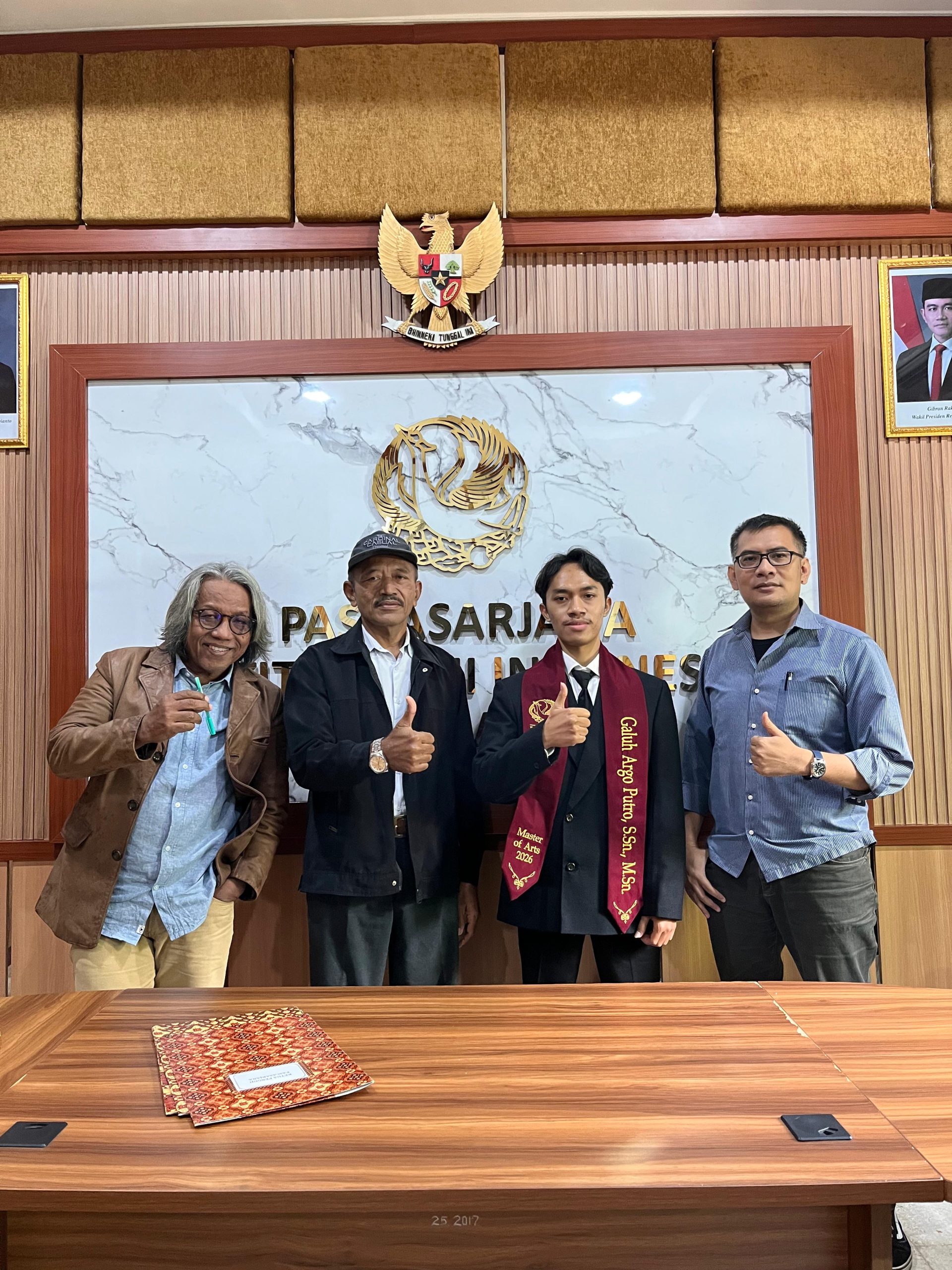 Ujian tesis tersebut dilaksanakan dengan tim penguji yang terdiri atas Dr. Drs. Budi Setiyono, M.Si., selaku Ketua Penguji, Dr. Aris Setiawan, S.Sn., M.Sn., sebagai Penguji utama, serta Prof. Dr. Suyoto, S.Kar., M.Hum., sebagai Pembimbing.