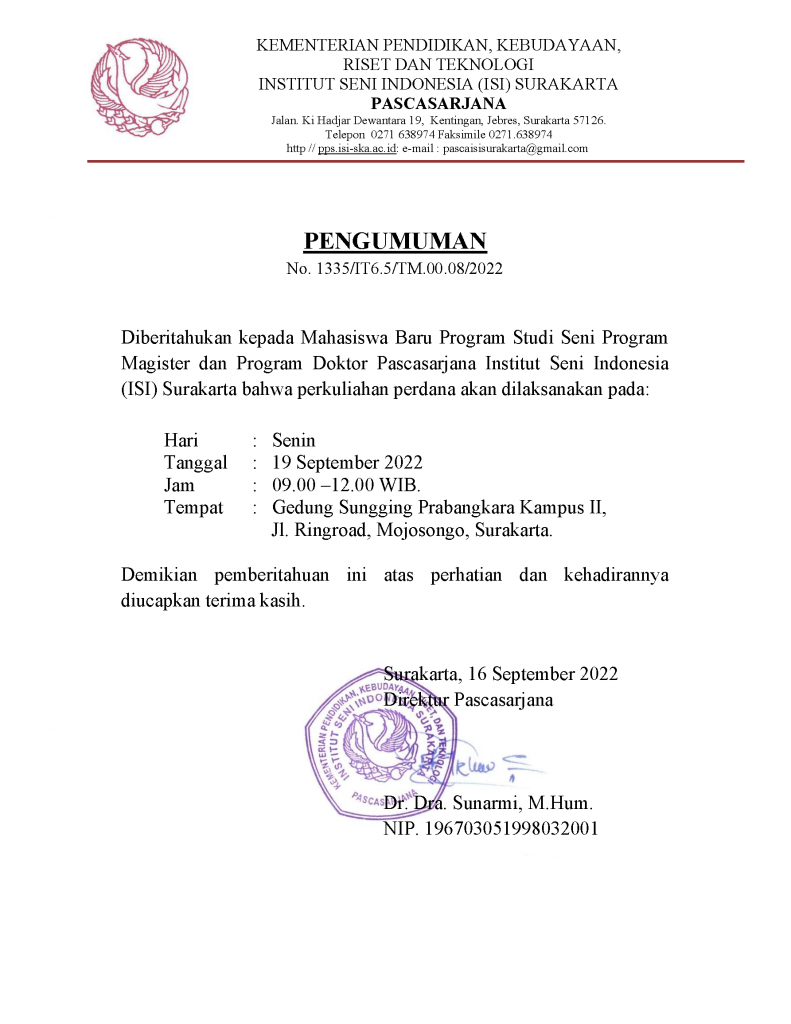 Pada hari Jumat, 29 September 2023, Pascasarjana ISI Surakarta menyelenggarakan Ujian Tugas Akhir Tesis an. Try Mulyani NIM. 212111009 angkatan...