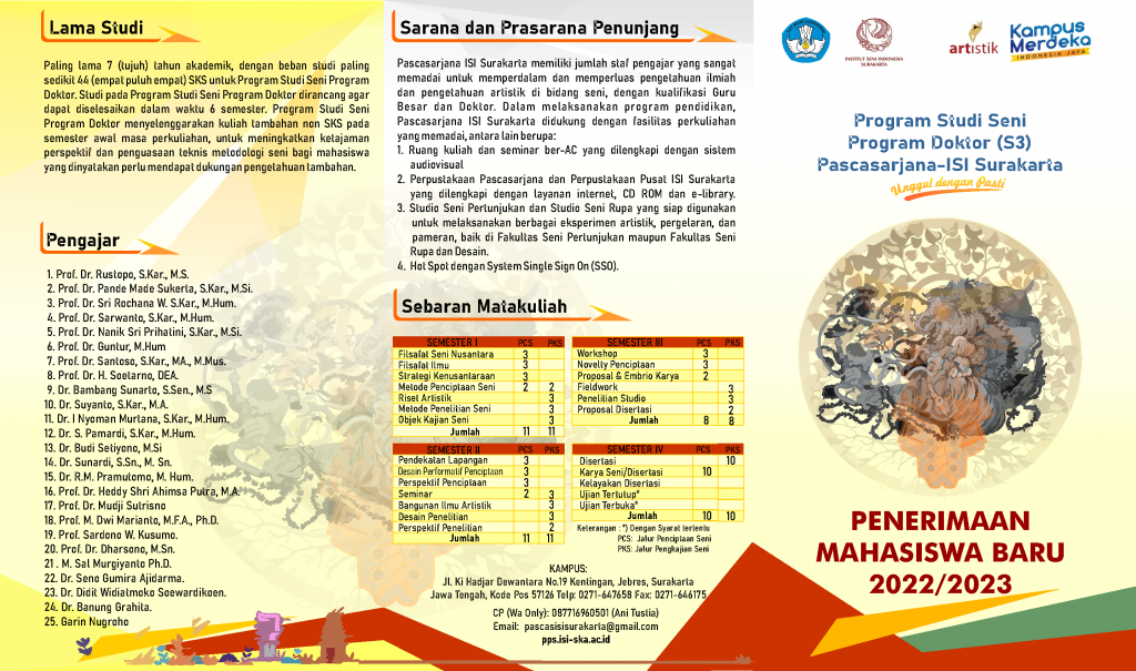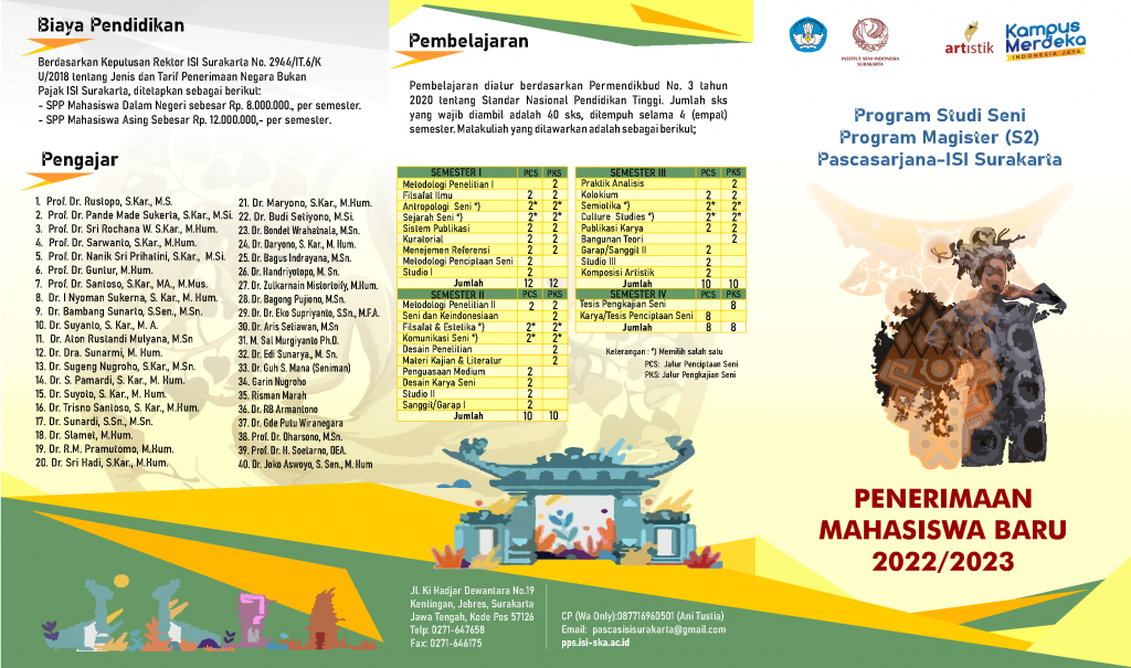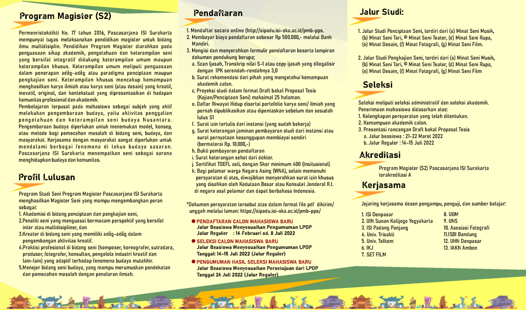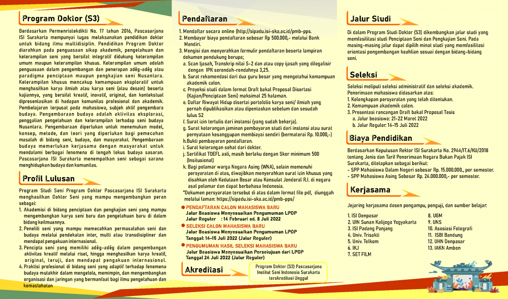 Dengan ini kami informasikan bahwa Program Pascasarjana ISI Surakarta kini membuka pendaftaran untuk Program Studi Seni Program Magister (S2) dan...