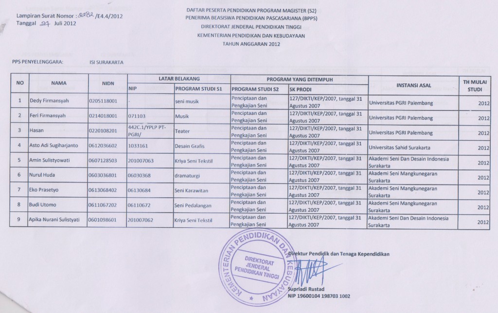 Ujian Tugas Akhir Program Magister/S2 Minat Penciptaan Seni Tari Sabtu 02 Februari 2019, Jam 21.00 WIB, di Jl. Gatot Subroto, Kemlayan...