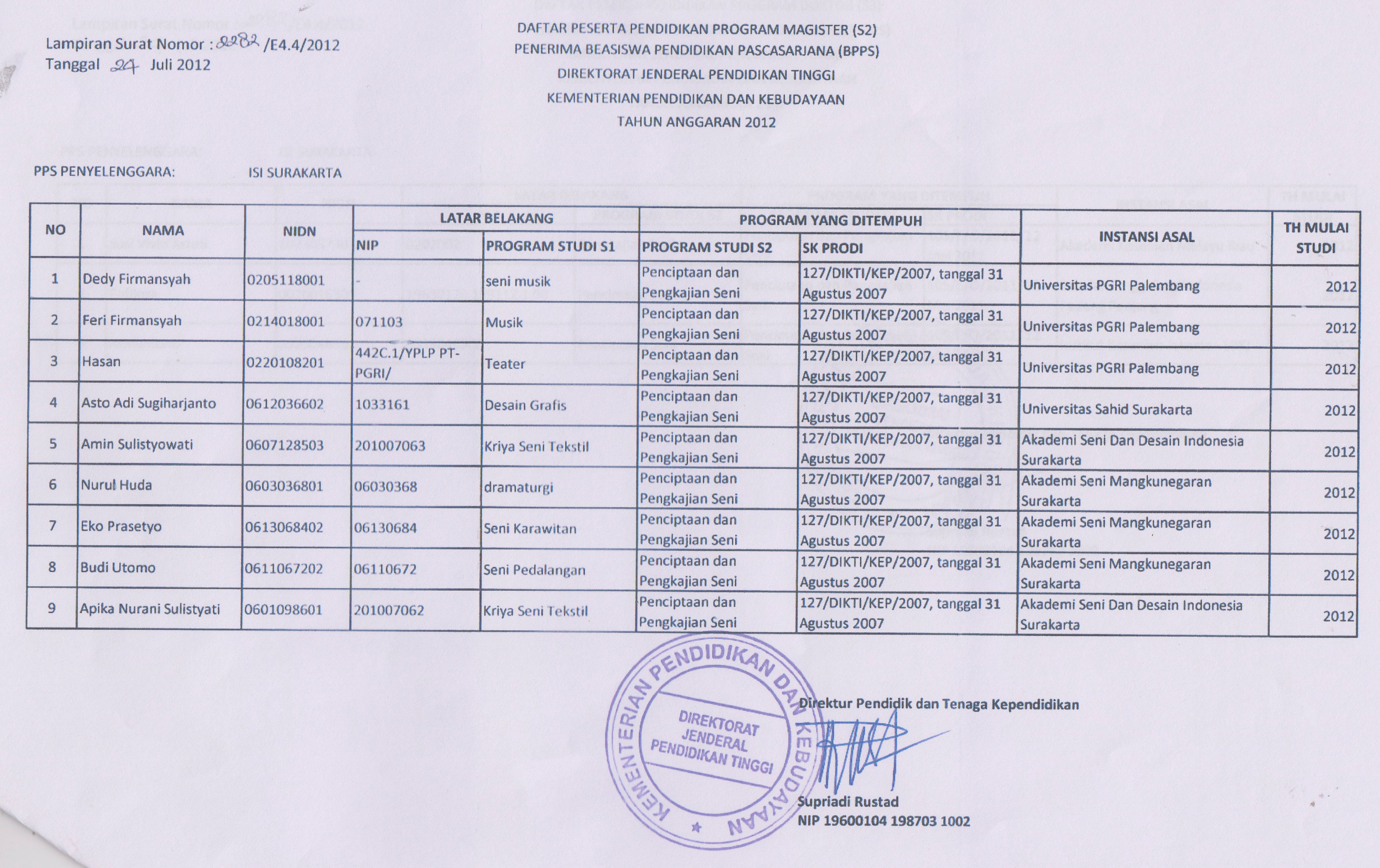 Informasi, Pengumuman, Program Doktor (S3), Program Magister (S2)