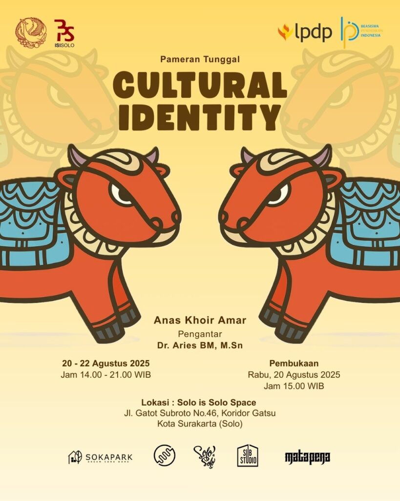 Pameran tunggal “CULTURAL IDENTITY” karya Anas Khoir Amar hadir sebagai bagian dari ujian tesis karya seni di Program Pascasarjana. Pameran ini mengangkat tradisi Kerrabhân Sapè Madura, sebagai narasi visual yang merefleksikan nilai-nilai budaya seperti kerja keras, kebersamaan, sportivitas, dan kebanggaan sosial.