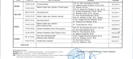 JADWAL PERKULIAHAN PROGRAM STUDI SENI PROGRAM MAGISTER DAN DOKTOR PASCASARJANA ISI SURAKARTA SEMESTER GENAP TAHUN AKADEMIK 2023/2024