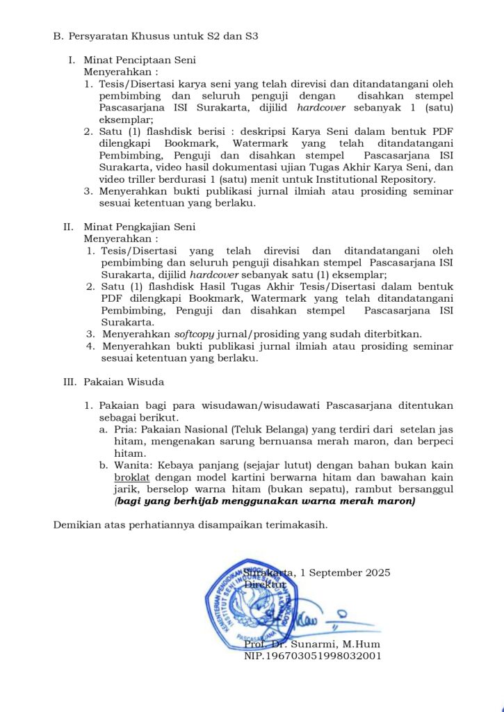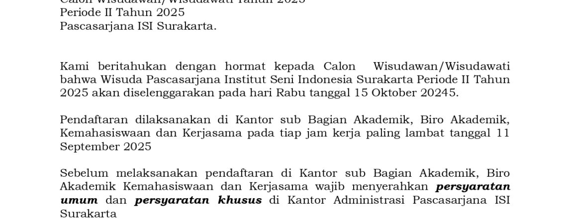 Pada hari Rabu, 20 September 2023 Pascasarjana ISI Surakarta menyelenggarakan Ujian Terbuka Disertasi atas nama Yuhri Inang PrihatinaKetua Penguji: Dr....